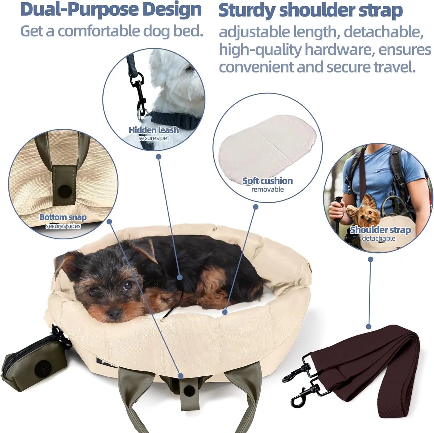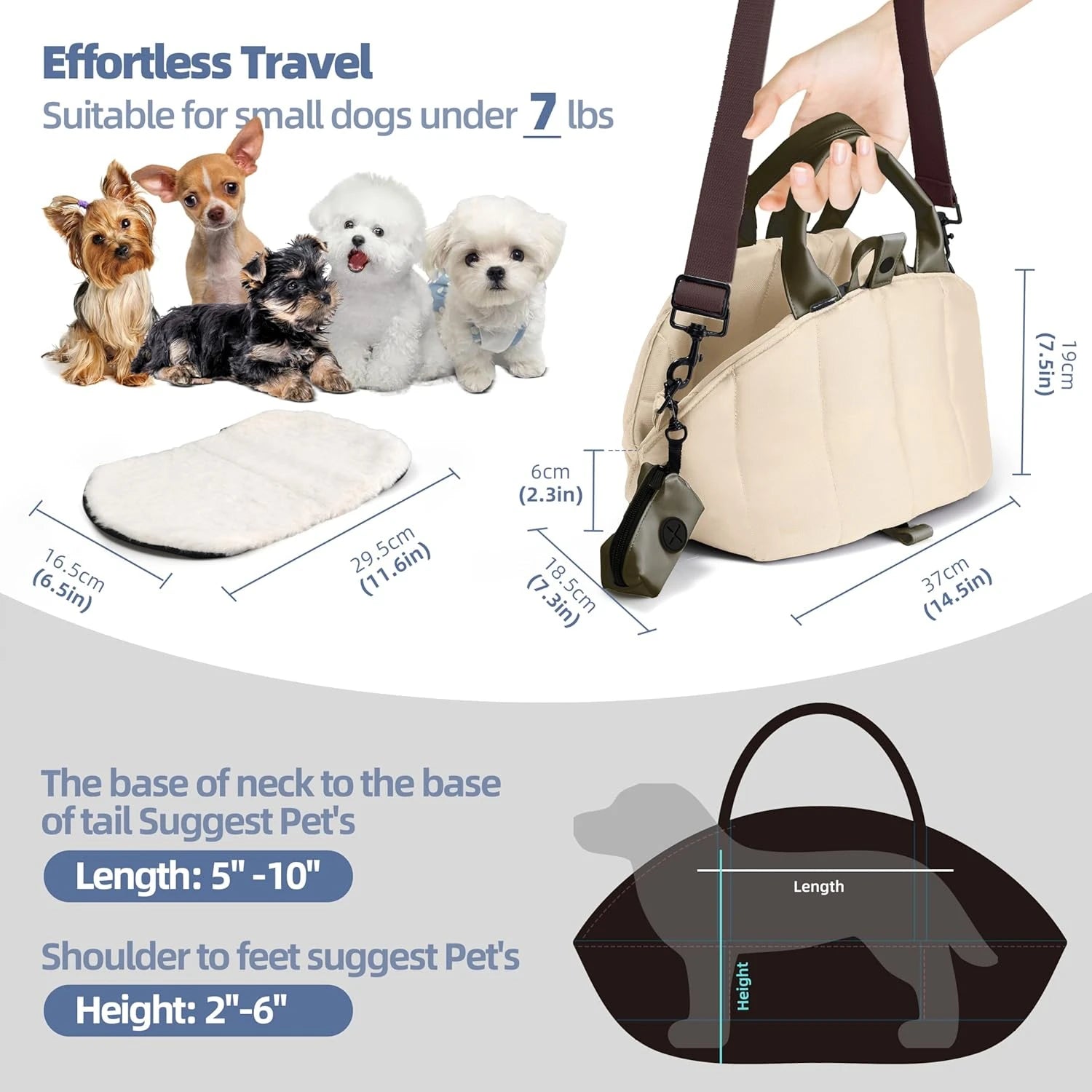 • Dog Purse Carriers for Small Dogs Waterproof Carrier Soft-Sided Portable for Traveling with Adjustable Safety Leash